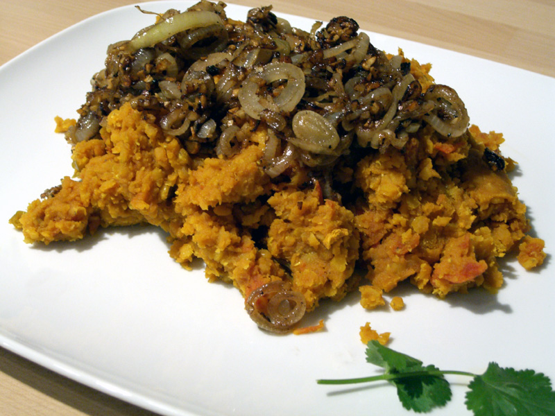 Rote Linsen mit gebratenen Zwiebeln