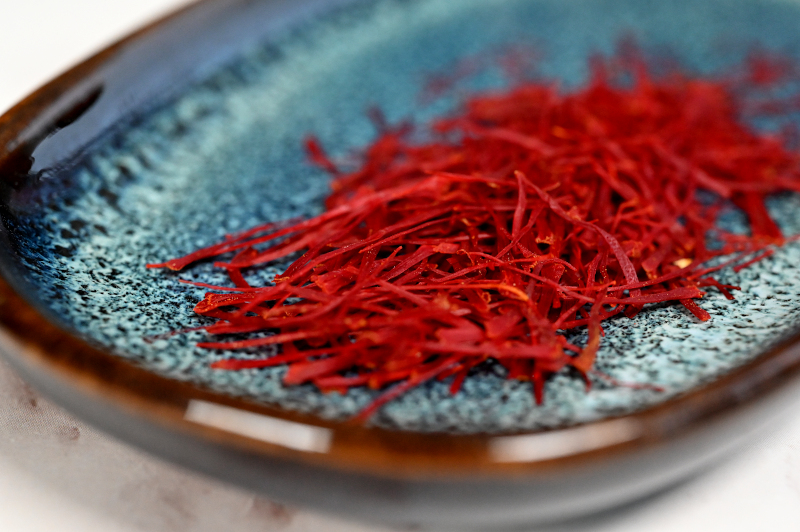 Die Narben des Safran haben einen intensiv blumiges Aroma mit einer Note von Moschus und Honig. Geschmacklich ist er erdig, durchdringend und leicht scharf.