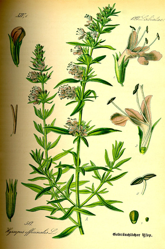 Der Ysop ist ein Halbstrauch aus der Familie der Lippenblütler (Lamiaceae). Die Pflanze wird mindestens seit dem 16. Jahrhundert als Gewürz- und Heilpflanze kultiviert.