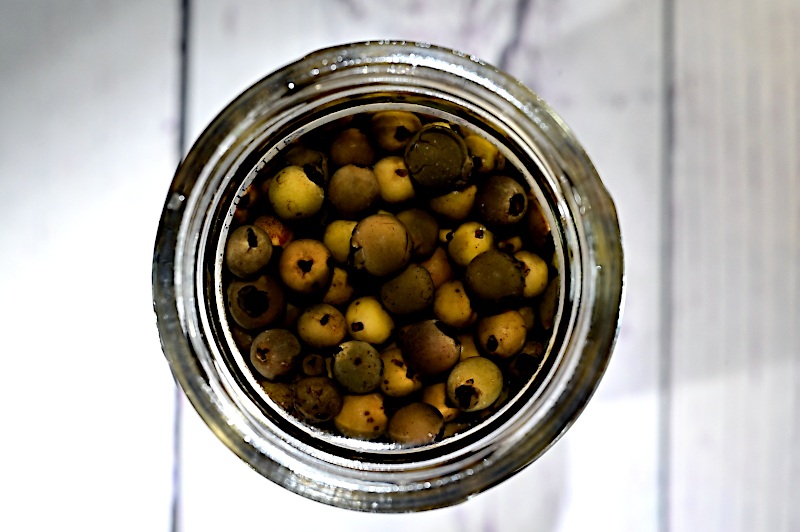 Grüne Pfefferkörner sind die früh, noch unreif geernteten Beeren, die sofort in Salz- oder Essiglake eingelegt werden (fermentierter Pfeffer) oder schnell und bei hohen Temperaturen getrocknet oder gefriergetrocknet wird. Daher behält er die ursprüngliche grüne Farbe. Durch Luftfracht ist mittlerweile frischer grüner Pfeffer weit verbreitet erhältlich. Diese Variante eignet sich hervorragend für Saucen wie die berühmte grüne Pfeffersauce, da sie eine gewisse Frische und lebendige Würze hinzufügt, ohne zu dominant zu wirken.