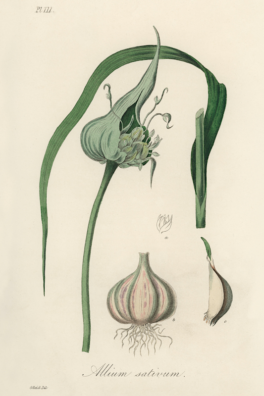 Knoblauch ist die »Lebenszwiebel«. Seit ältester Zeit wird er medizinisch oder therapeutisch eingesetzt. Er ist reich an Vitamin B und C, Eisen, Calcium und anderen Mineralien, darunter auch ein hohes Quantum an Sulfiden, und bekannt für seine antibakteriellen, antifungalen, antirheumatischen und antithrombotischen Eigenschaften.