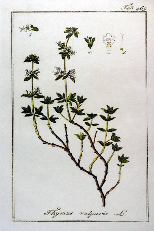Geschichtlich wird Thymian (lateinisch thymus, auch thimus) im Mittelalter (12. Jahrhundert) bei Hildegard von Bingen erwähnt.