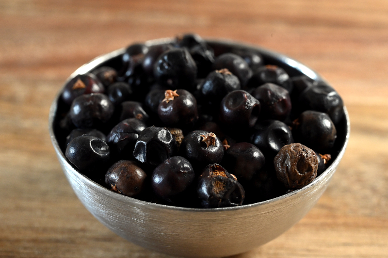 Die Wacholderbeeren sind ein Gewürz, das in vielen klassischen Gerichten wie Sauerbraten verwendet wird. Die fast schwarzen Beeren geben den Gerichten den typischen Geschmack. Wacholderbeeren sind auch bekannt für ihre harntreibende Wirkung und werden traditionell zur Besserung der Beschwerden bei Gicht und Rheuma eingesetzt. Sie sind reich an Flavonoiden, die freie Radikale im Körper unschädlich machen und dabei vor Erkrankungen und Alterungsprozessen schützen. In der Naturheilkunde kommen Wacholderbeeren unter anderem auch bei hartnäckigem Husten und Bronchitis zum Einsatz. Wacholderbeeren regen die Bildung von Magensäften sowie die Galle-Ausscheidung und damit die gesamte Verdauung an. Gleichzeitig fördern Wacholderbeeren die Darm-Peristaltik, also die natürliche Eigenbewegung des Darms. Wacholderbeeren sind besonders reich an ätherischen Ölen beziehungsweise an Wacholderöl, das positive Effekte auf die Gesundheit hat. Unterstützt wird das aromatische Öl dabei noch von Harz, Bitterstoffen, verschiedenen Säuren und natürlichen Farbstoffen.