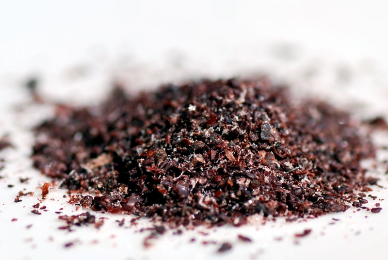 Die Beeren sind ziegelrot bis violett gesprenkelt und schmecken fruchtig-säuerlich. Sie werden im Ganzen, zerstoßen oder zu grobem Pulver gemahlen verwendet. Durch den hohen Gehalt an Tanninen, Fruchtsäuren und ätherischen Ölen ergibt sich das typische säuerlich-herbe Aroma.