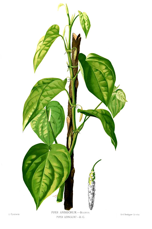 Langer Pfeffer, Stangenpfeffer, Schokoladenpfeffer, Balinesischer Pfeffer, Jaborandi Pfeffer oder Bengalischer Pfeffer, long pepper (eng.), pimienta larga (span.), le poivrier long (franz.), il pepe lungo (ital.)