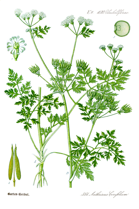 Kerbel ist eine würzig duftende Wiesenstaude mit leichtem Anisaroma und Anklänge an Petersilie, Kümmel und Pfeffer. Kerbel erinnert im Aussehen an glatte Petersilie, hat jedoch ein völlig anderes Aroma.