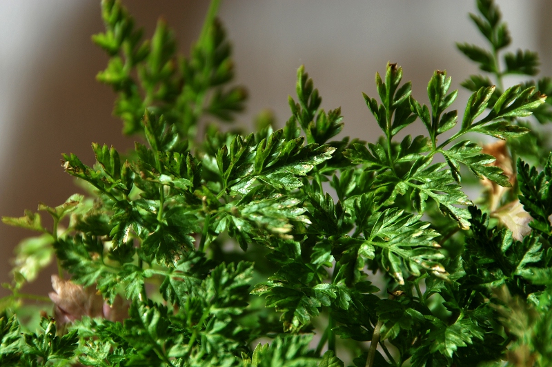 Hinweis: Kerbelblättchen ganz zum Schluss zu Speisen geben, niemals mitkochen.
