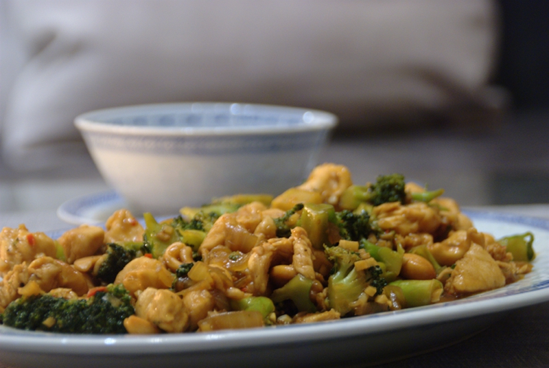Hähnchenbrustwürfel mit Cashewkernen und Brokkoli