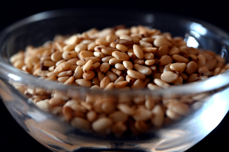 Die Sesampflanze aus der Familie der Sesamgewächse (Pedaliaceae) gehört wohl zu den ältesten Kulturpflanzen. Auf einem bis zu 2 Meter hohem Halm mit länglich ovalen Blättern blüht die Sesampflanze weinrot oder weiß. Die Frucht ist eine länglich-quadratische, fein behaarte und mit Drüsen besetzte, gelappte, spitze, 1,5 bis 3,5 Zentimeter lange und 6 bis 7 Millimeter breite, vielsamige, lokulizidale Kapsel. Die abgeflachten Samen sind 2,5 bis 3 Millimeter lang und 1,5 Millimeter breit und farblich von schwarz, braun, gelblich bis weiß. Nach der Reife der Samenkapseln werden die Sesampflanzen geschnitten und in Bündeln getrocknet. Dabei öffnen sich die Kapseln langsam und der Sesamsamen fällt heraus.